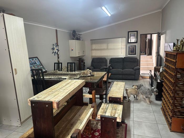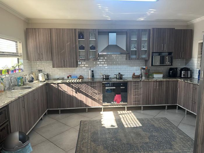 Opposite Pro‑Ed Academy in an established neighbourhood, this family home offers open-plan kitchen to lounge, granny flat with separate entrance, lush garden overlooking salt pans. 4 beds, 4 baths, 3 garages.