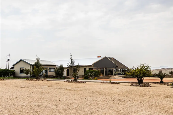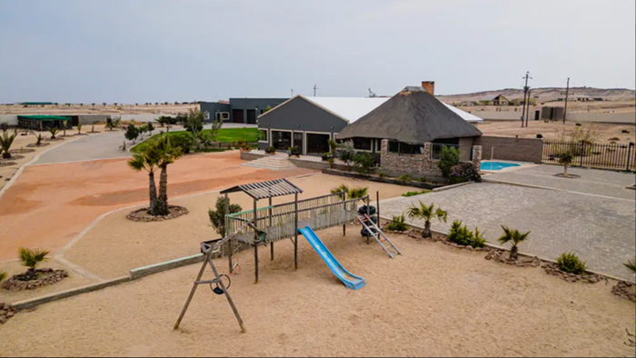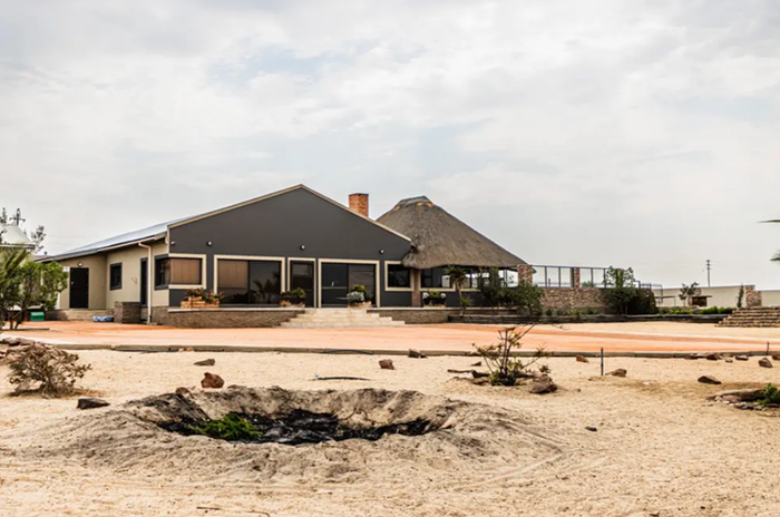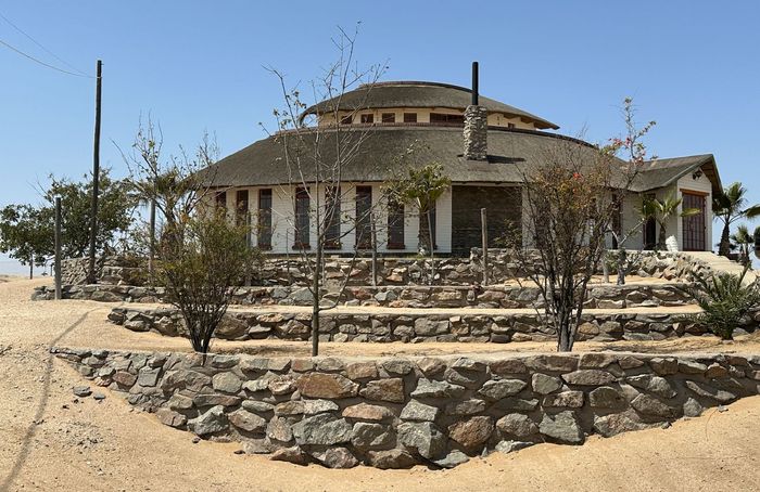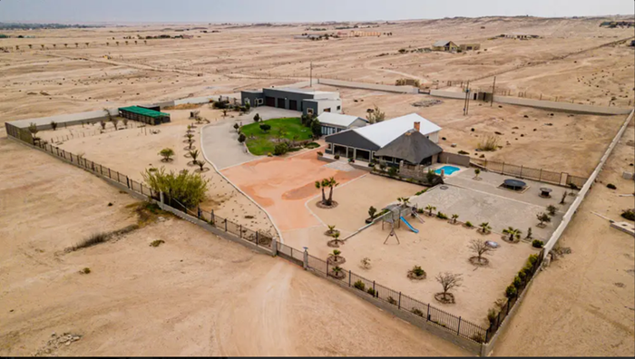 Secluded luxury living just outside Swakopmund with panoramic views of the Moon Landscapes, expansive viewing decks, solar systems and a four-door warehouse — seven bedrooms, seven bathrooms, four garages.
